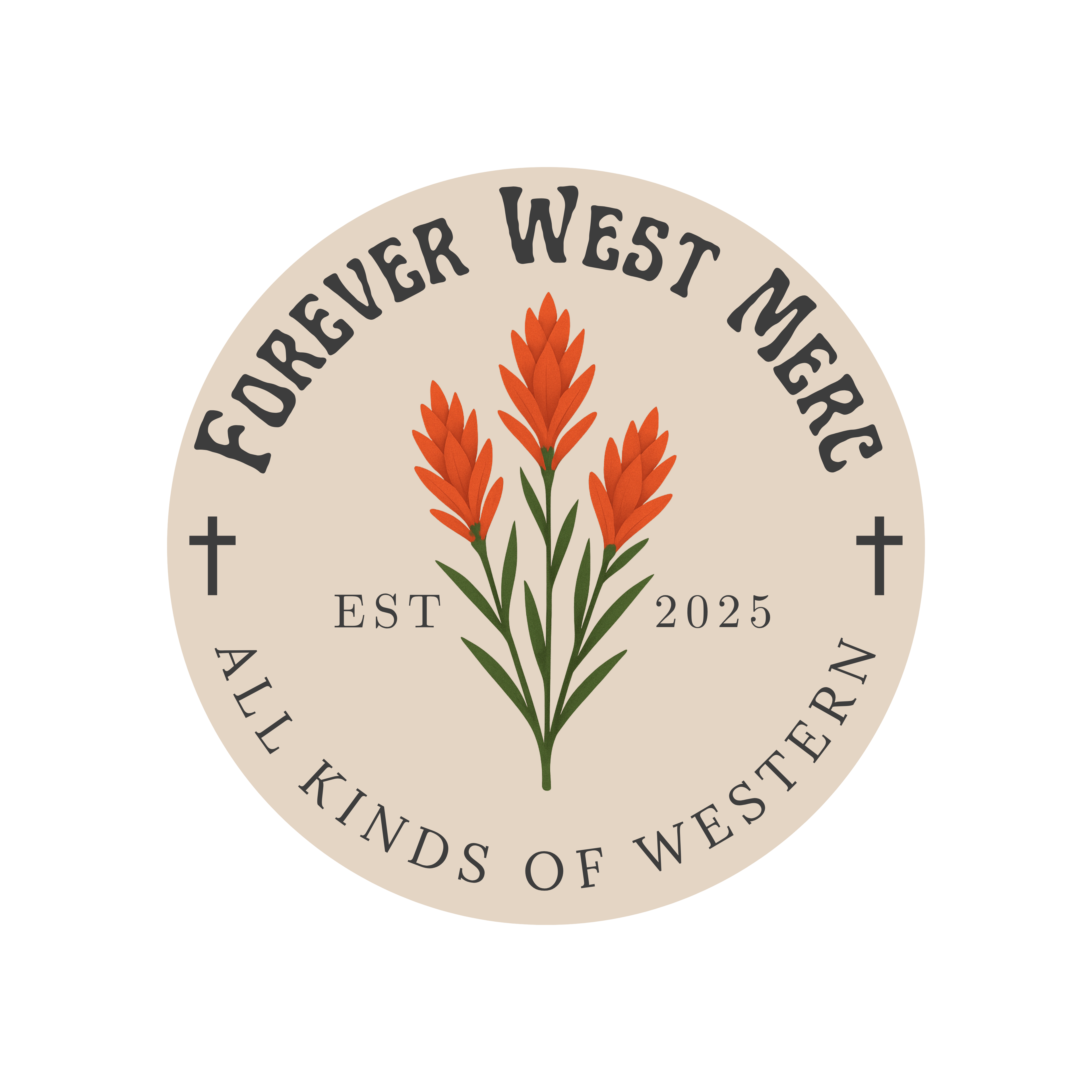 Welcome to Forever West Mercantile. My name is Shelby and I am the owner of this new Wyoming western business. I am the proud wife to my husband Dalton and a mother to three amazing children from God. Wyoming has always been our home and I wanted to incorporate our state flower, the Indian Paintbrush, and our Christian faith with crosses in my official logo.